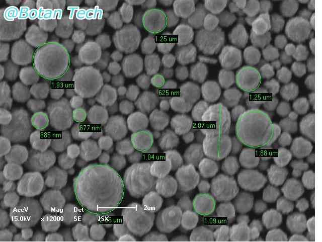 | 分級(jí)后細(xì)粉 | ![]() | 激光粒度儀測(cè)量結(jié)果 d10=1.072um d50=1.454um d95=2.167um |